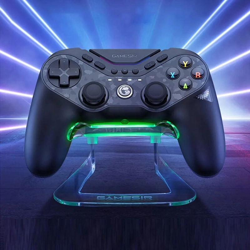 نورپردازی سه بخشی در دکمه های ABXY، نوار رنگی زیر نام GameSir و دکمه Home