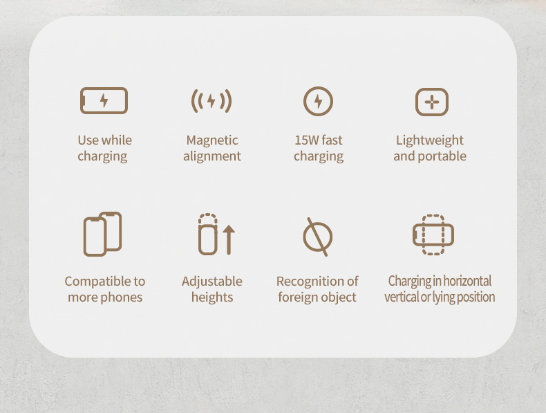 قابلیتهای شارژرتراز مغناطیسی، قابلیت جدا شدن قطعات، استفاده به عنوان استند، قابلیت قطع شارژ خودکار، قابل تنظیم