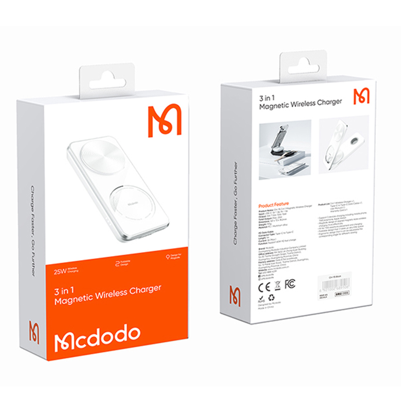 شارژر بی سیم آیفون 25 وات سه کاره Mcdodo CH-1150 مخصوص محصولات اپل