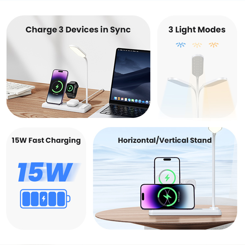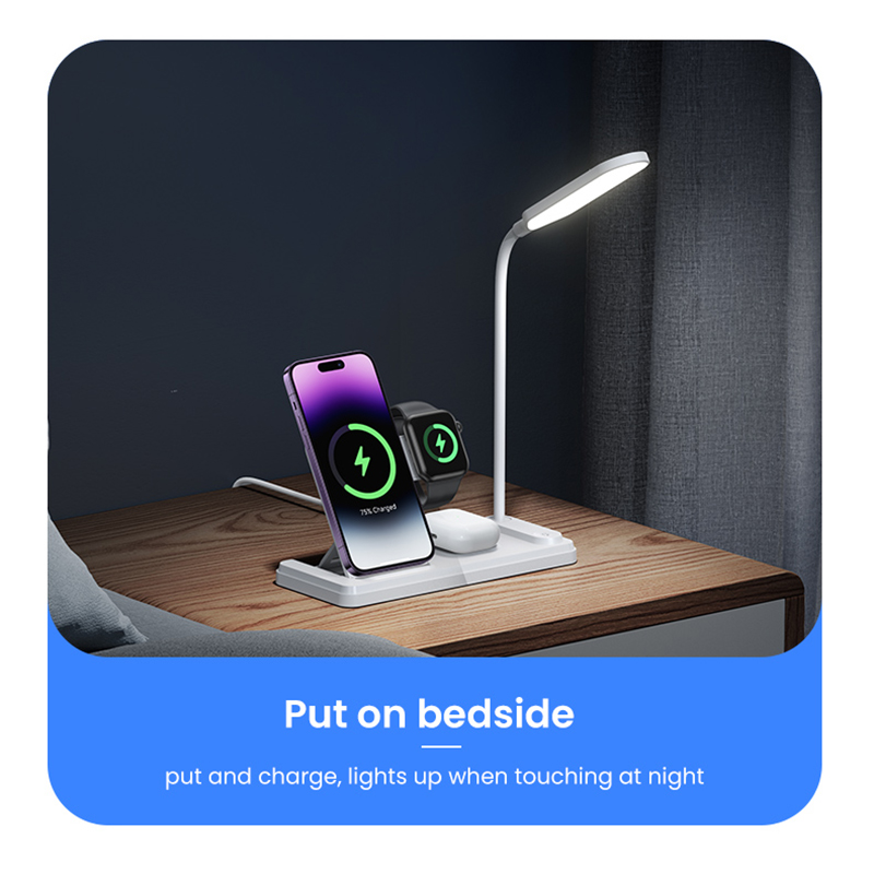 شارژر چهار کاره بی سیم یوسمز مناسب برای گوشی های با قابلیت شارژ وایرلس ، اپل واچ ، ایرپاد وایرلس شارژ دارای چراغ مطالعه