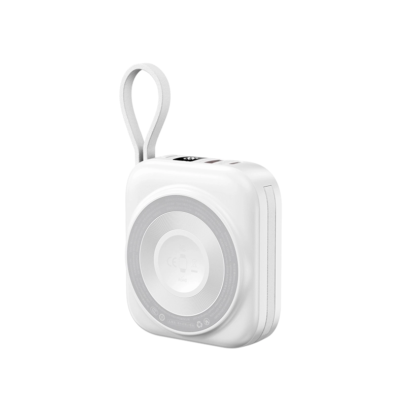پاور بانک ویوو مدل Cube Wi-P055 با ظرفیت واقعی ۱۰۰۰۰ میلی آمپر شارژ همزمان چندین دستگاه رو تضمین میکند. طراحی ۵ در ۱ همه کاره – شارژ بی سیم مغناطیسی ۱۵ وات برای گوشی، ۲.۵ وات اختصاصی برای ساعت هوشمند، کابل های داخلی Lightning و Type-C با پشتیبانی تا ۲۲.۵ وات فست شارژ، به علاوه پورت USB-A.