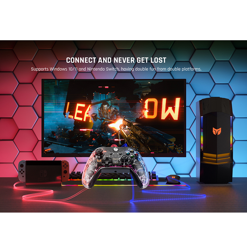دسته بازی Rainbow-S از برند BigBig Won یک کنترلر گیمینگ با ویژگی های کاربردی است که برای پلتفرم های PC و Nintendo Switch طراحی شده است. برخی از مشخصات اصلی آن شامل موارد زیر است:
