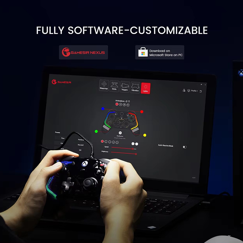 شخصی سازی با نرم افزار اختصاصی: نرم افزار GameSir Nexus برای ویندوز به شما امکان می دهد تا عملکرد دکمه ها، نورپردازی RGB و سایر تنظیمات دسته را مطابق سلیقه ی خود تغییر دهید.