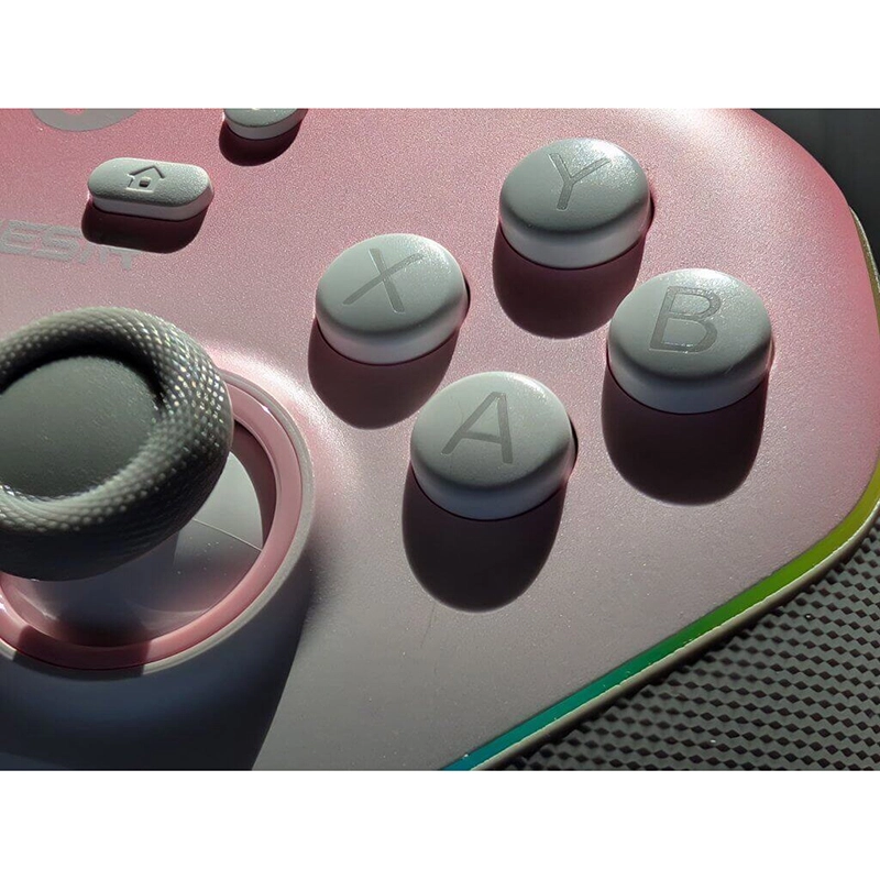 سایر مشخصاتکانکشن از طریق برنامه اختصاصی گیمسر /دارای قابلیت جابجایی دکمه های X-Y-A-B / دارای جوی استیک هال افکت / مجهز به حسگرهای مغناطیسی برای جلوگیری از دریفت استیک / عمر مفید تا 5 میلیون چرخه با دقت و پاسخگویی بالا /دارای تریگرهای هال افکت /دارای موتورهای لرزشی دوگانه /دارای ژیروسکوب 6 محوره پشتیبانی از کنترل حرکتی /دکمه های قابل برنامه ریزی / نورپردازی RGB قابل تنظیم از طریق دکمه M/ دارای پایه شارژ هوشمند / باتری 1000 میلی آمپری با شارژدهی حدود 15 ساعت /طراحی ارگونومیک و راحت