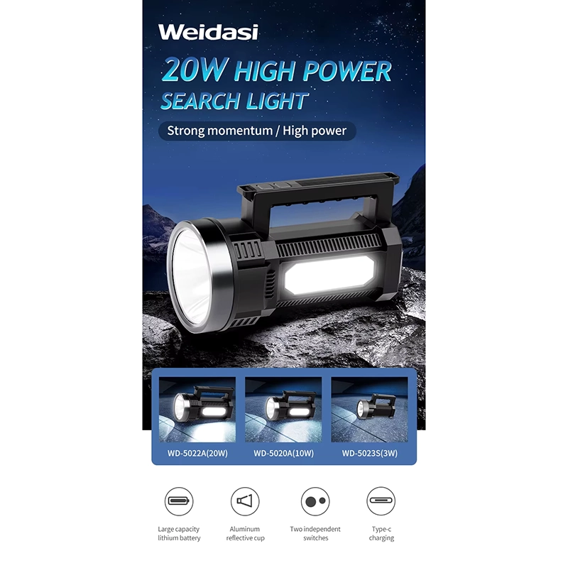 نورافکن دستی شارژی ویداسی Weidasi مدل WD-5022A دارای باتری داخلی