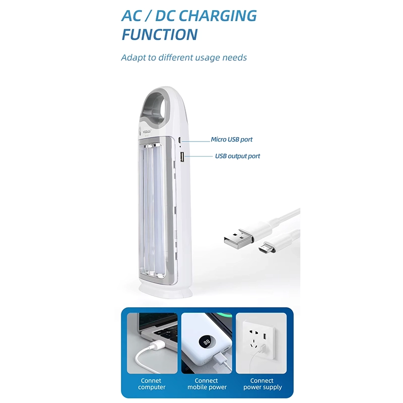یک چراغ شارژی چند کاره که بیشتر برای کمپینگ، سفر، قطعی برق، کوهنوردی، استفاده در خوردو و استفاده خانگی است با ظرفیت باتری 2400 میلی آمپر/ با قابلیت شارژ
